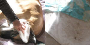 本当にふき取りだけでダメージもなく、匂いも軽減。特におしっこがかかってしまった毛の色も匂いも消えてくれたのには驚いたのだそう。