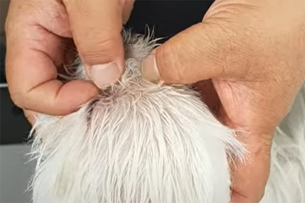 (1)短毛犬同様に吹きかけて手で軽くのばしてください。